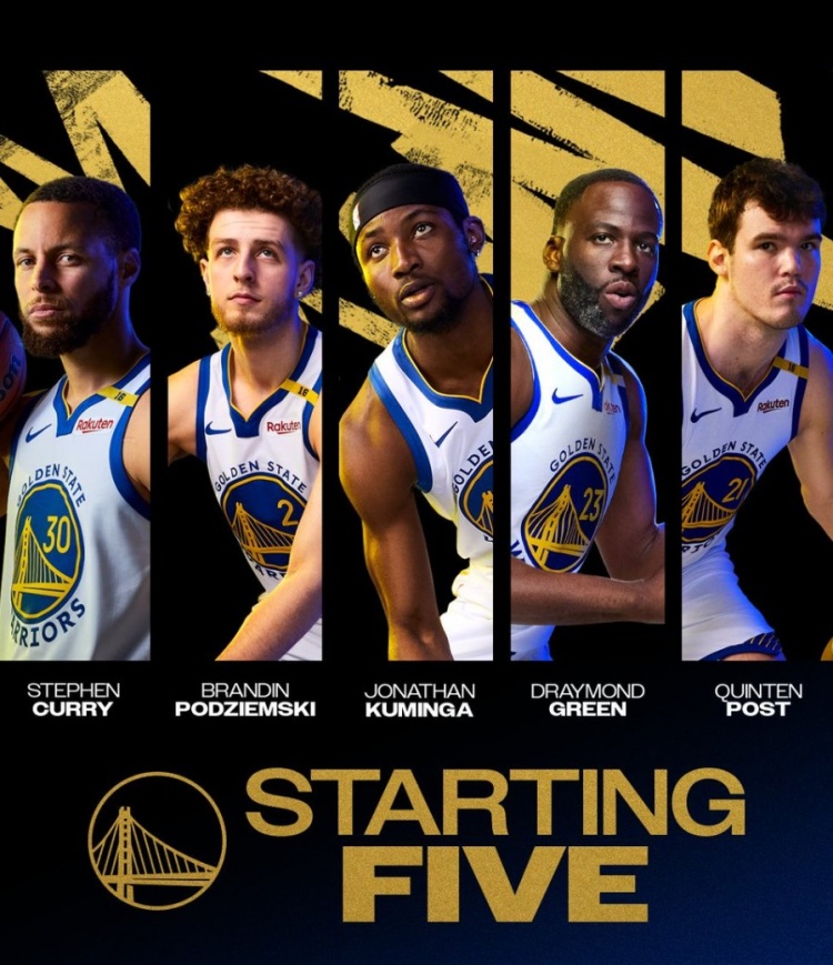 勇士首发:库里、波杰姆斯基、库明加、追梦格林、波斯特。