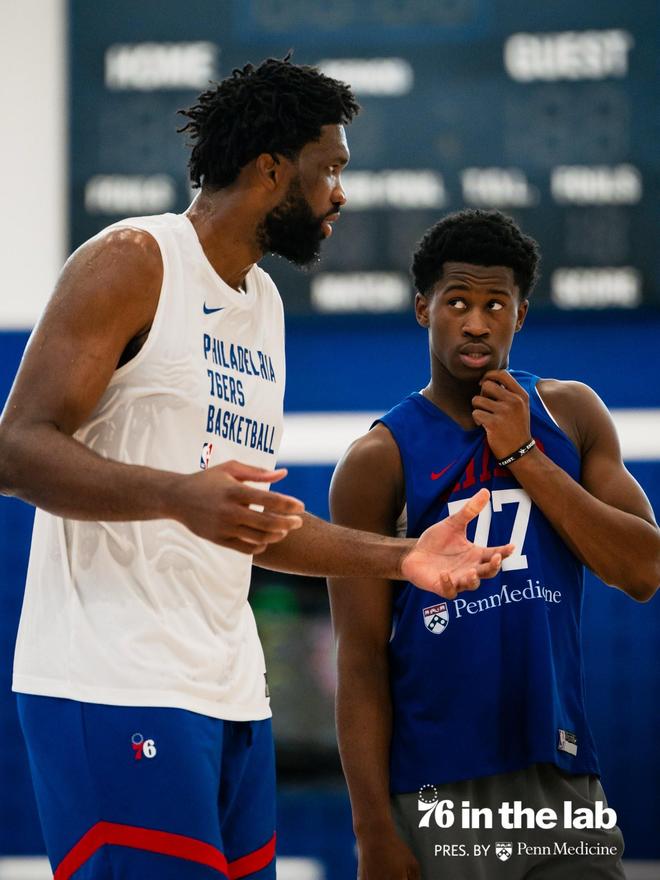 在76人队晒出的照片中,在其中一张照片中,恩比德正在进行投篮,另一张照片与今年球队选中的探花秀VJ-埃奇库姆同框。从照片上来看,恩比德的体型明显变得更瘦了一些。值得一提的是,今年休赛期关于控制体型最为成功的当属东契奇,他的减重成果引发了NBA媒体的格外关注。