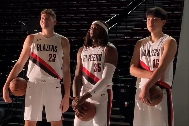 今天的媒体日,杨瀚森在摄影棚拍摄了定妆照,杨瀚森在拍摄时展现了运球技巧,还完成了两次胯下运球,展示了自己技术型中锋的特质。同时开拓者三大中锋全部出现,并且同框拍照了,三大中锋分别是克林根、罗威、杨瀚森,杨瀚森站在最右边,他身高和克林根差不多,比罗威高一头。这三人面对镜头都比较轻松,有说有笑,可见私下里关系不错,虽然是直接竞争关系,但球队还是氛围很好的。