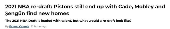 美媒重排NBA21年乐透选秀:火箭申京飙升成探花湖人落选秀捡大漏