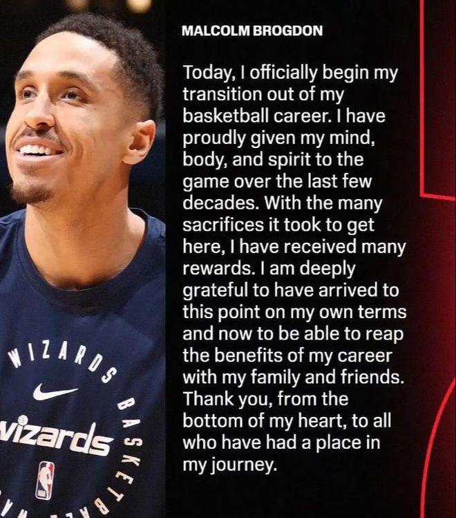 距离 NBA 新赛季开幕仅剩 6 天,一则突发消息震惊联盟,据名记沙姆斯·查拉尼亚报道,球队后卫马尔科姆·布罗格登通过ESPN正式宣布退役决定,结束自己长达九年的NBA职业生涯。这一突如其来的决定让整个篮球界为之哗然。