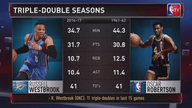 也是因为威少在球队的绝对核心地位,球队最后关键时刻进攻全部由他包揽, 该赛季雷霆总计有40场比赛进入关键时刻(比赛最后五分钟双方分差五分),最终雷霆在威少带领下取得25胜15负战绩,40场关键比赛中他有23场比赛取得三双数据,个人关键时刻总得分247分高居全联盟第一,第二是小托马斯的225分,第三是表王利拉德183分,其中关键抢断11次排名全联盟第2,仅低于奥托波特的12次。