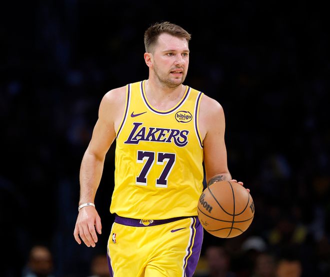东契奇在湖人vs勇士的比赛中,出战41分钟,27中17(三分10中2),10罚7中,砍下43分12板9助2断1帽,不过湖人以10分之差不敌勇士。