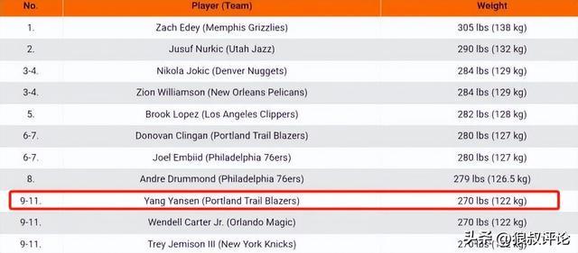 其实(增重速度)已经很快了,他在整个NBA体重已经排第九了,已经不轻了,再涨体重就不是那个事,要考虑能不能负荷,杨瀚森最好的体重最好不应超过125公斤,再涨到130公斤就影响你的移动能力,目标应该是保持体重,提升肌肉含量,提升对抗。卧推也得提高,中锋里面,卧推力量是最重要的,篮下对抗,篮板球手要起来。杨瀚森去NBA之前,卧推推不起100公斤,联合试训才95公斤,CBA很多球员能推120公斤,杨瀚森还小(当时不足20岁)。