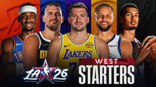 NBA官方公布了2026年全明星首发阵容。西部首发分别是约基奇、东契奇、亚历山大、库里、文班亚马。东部首发分别是字母哥、布伦森、杰伦布朗、马克西、康宁汉姆。值得一提的