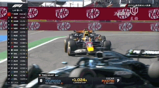 第11圈,皮亚斯特里终于攻破角田强硬的防守,在一号弯前的DRS对其完成超越升至第8名。