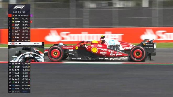 第十六圈:汉密尔顿因之前在4号弯离开了赛道,被罚时10秒!