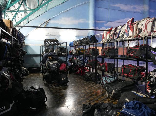 这是2025年11月22日在肯尼亚内罗毕拍摄的肯尼亚“冰狮”冰球队器材。新华社记者 李亚辉 摄