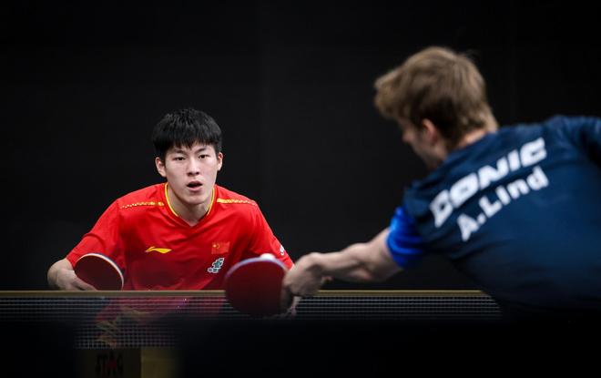 温瑞博和安德斯·林德此前没有交锋记录,毕竟他刚打成年级别的比赛不久。温瑞博在国乒选手中属于高个子,护台面积比较大。这场比赛的第一局,两人打成2平之后,林德连得3分取得领先,就此他掌握主动权,最终11比7拿下第一局。