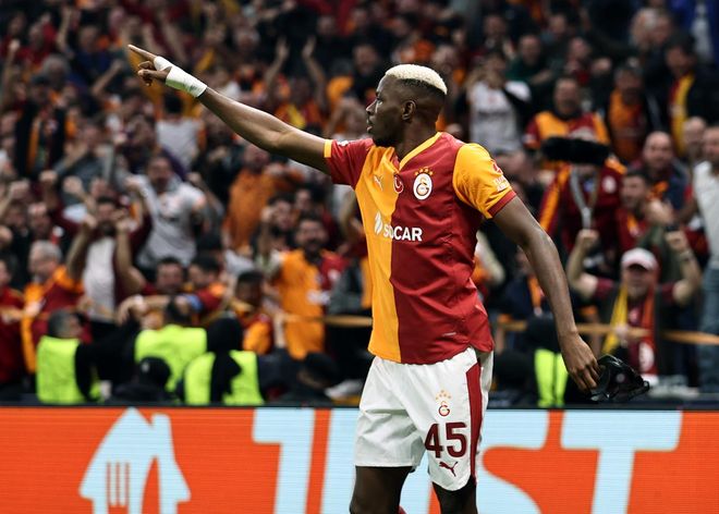 雷速体育10月23日宣 今日凌晨欧冠第3轮加拉塔萨雷对阵博德闪耀的上半场比赛中,奥斯梅恩上演梅开二度帮助球队半场2-0领先。