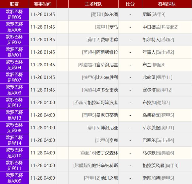 11月27日宣 欧冠联赛阶段第5轮战罢,最新积分榜如下: