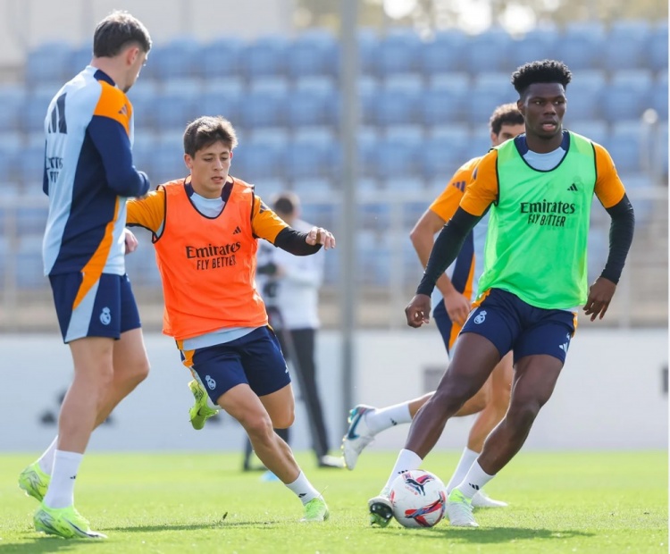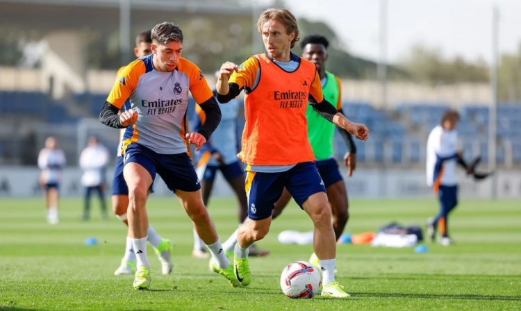 皇马今天进行本周第三次训练,官网晒球队训练照