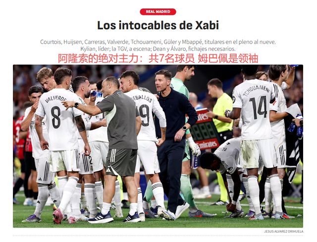 西甲前3轮,阿隆索执教的皇马收获3连胜,排名联赛第1位。9月6日,《阿斯报》撰文指出,经过夏季备战、3轮西甲之后,阿隆索敲定皇马的主力框架:有7名球员是绝对主力,场场首发。3场西甲,皇