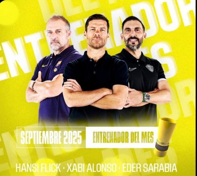 直播吧9月24日宣 西甲官方评选出9月最佳主帅候选,其中阿隆索、弗里克均在列,具体球队9月战绩如下:弗里克(巴萨)3连胜阿隆索(皇马)3连胜萨拉比亚(埃尔切)1胜1平