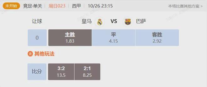 网易红彩今日挑选专家乔瓦尼带来西甲焦点战赛事解析,更多精彩方案可下载“网易红彩”App进行查阅!1.专家:乔瓦尼竞足 周日023西甲皇马VS巴萨开赛时间:2025-10-26 23:15:00皇马居