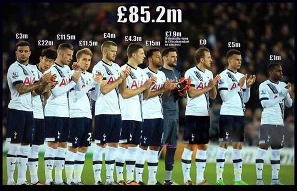 2016/17赛季,热刺以87分的队史最高积分夺得英超亚军,阵容造价仅8500万欧元。