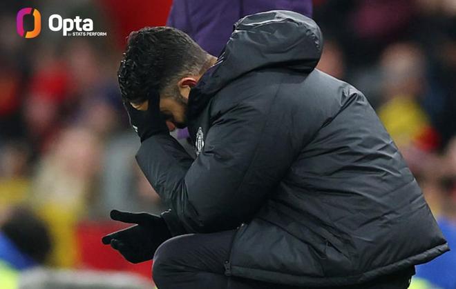 曼联队史首次在英超主场对手染红的情况下输球,此前46战不败